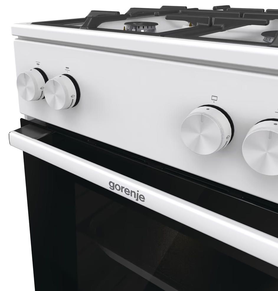 Надійна, потужна та зручна – Gorenje G400 GG5A10WFFM стане надійним помічником на кухні. Повністю газова модель із чотирма конфорками різної потужності й духовкою з фірмовою формою камери Homemade – усе для рівномірного та стабільного приготування.