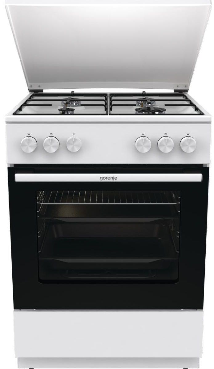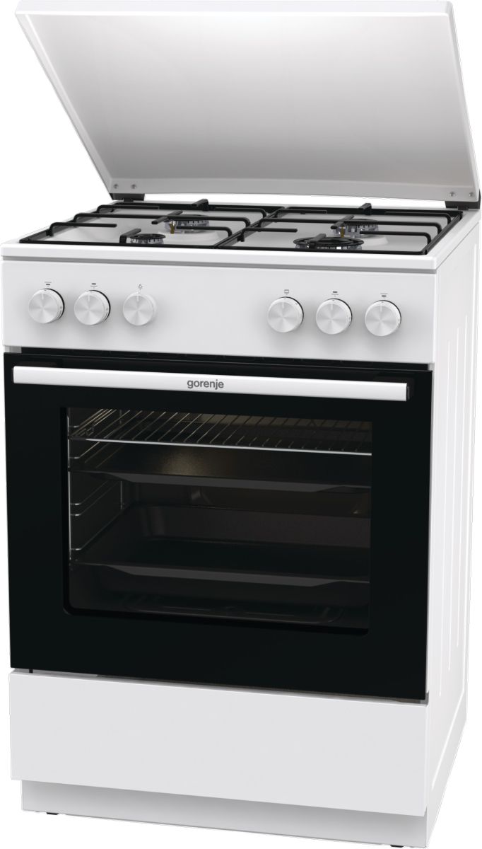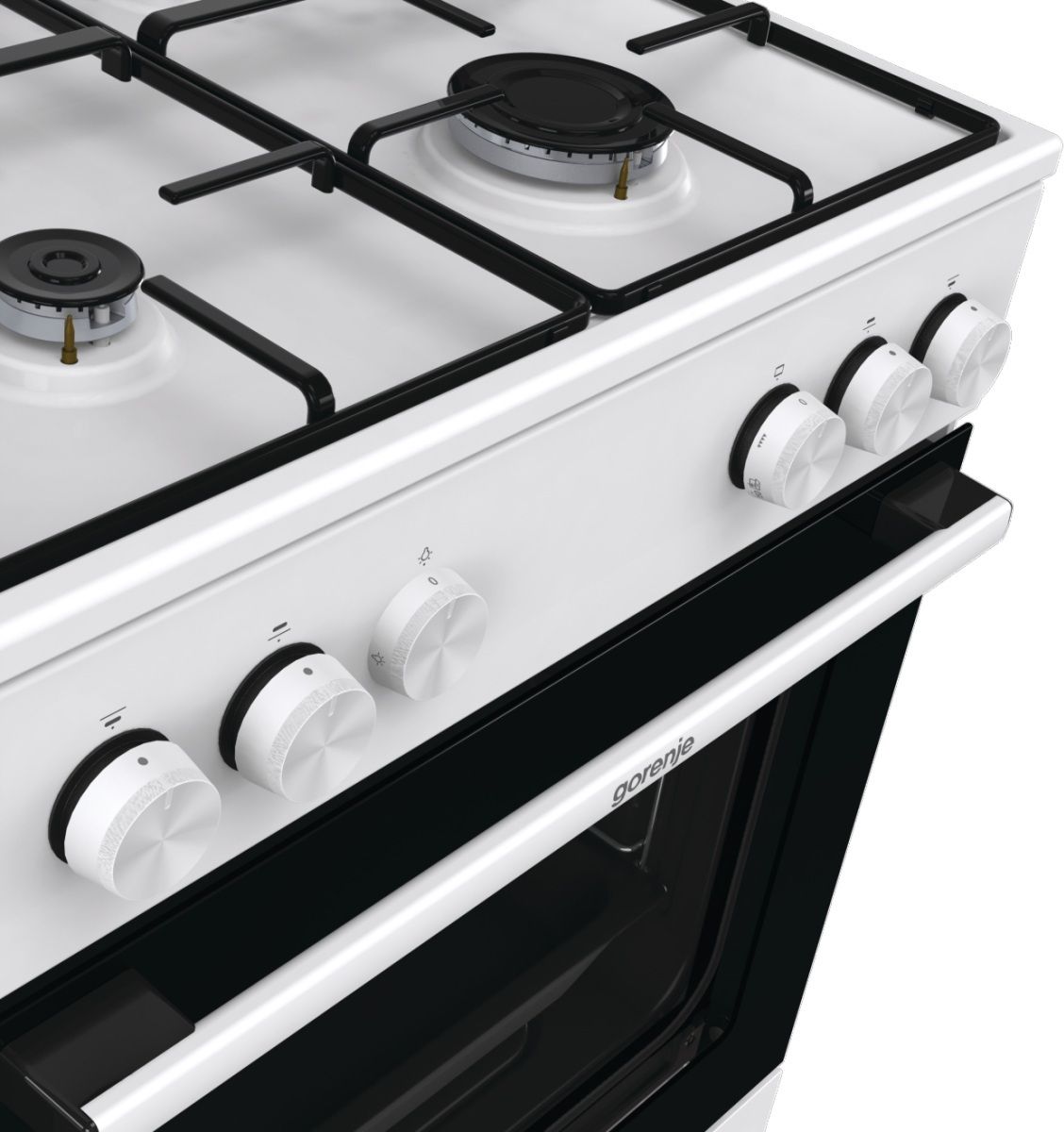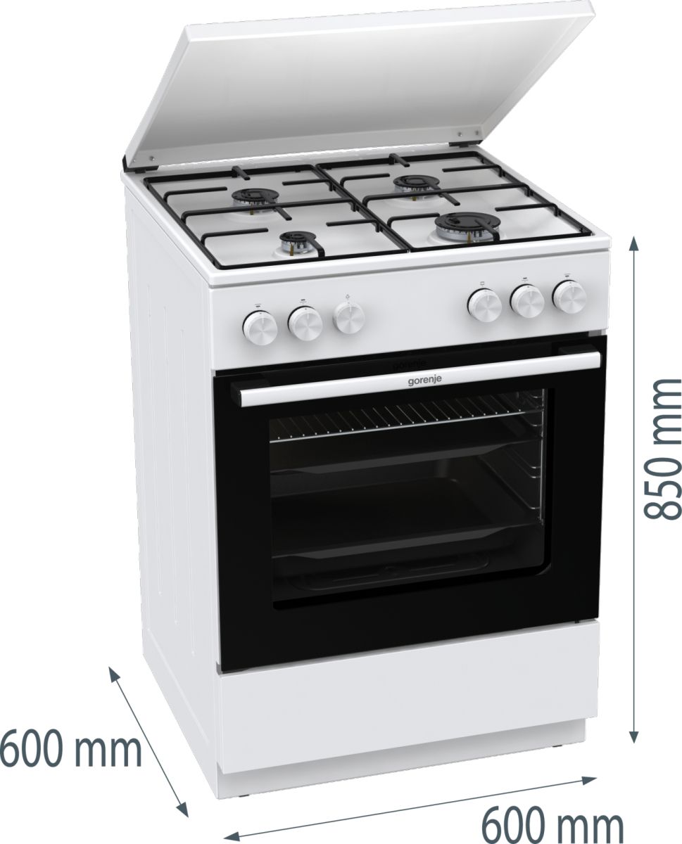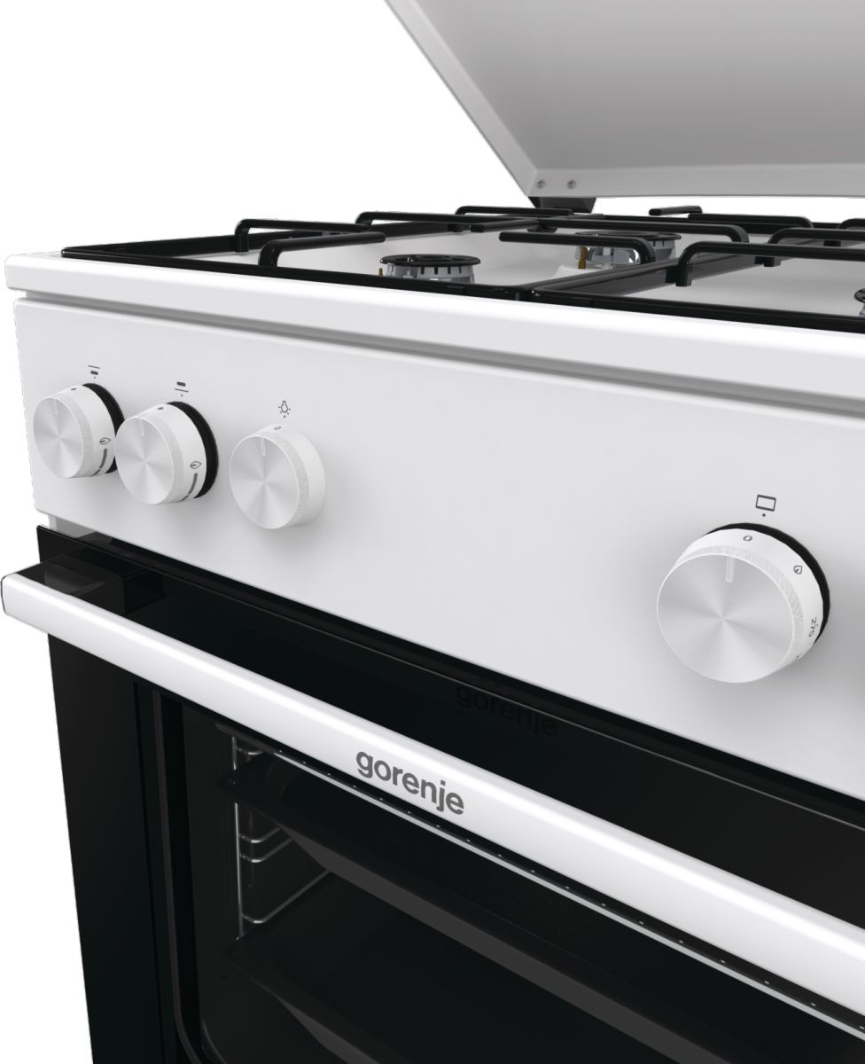Плита Gorenje газова, 72л, 60x60см, емальовані, з кришкою, білий