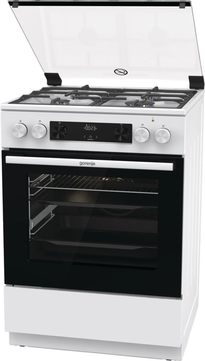 Плита Gorenje GKS6C70WF комбінована, 71л, 60x60см, дисплей, чавун, з кришкою, білий