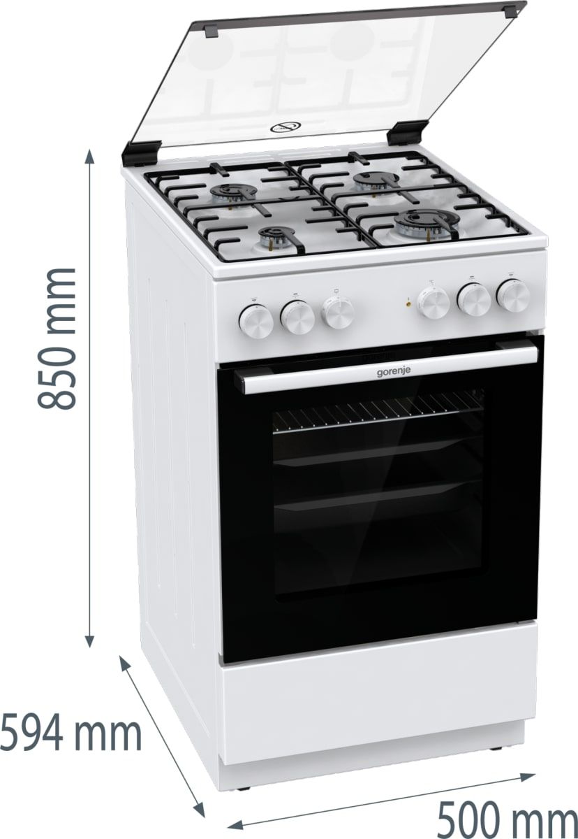 Плита Gorenje комбінована, 62л, 50x60см, газ-контроль, емальовані, білий