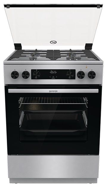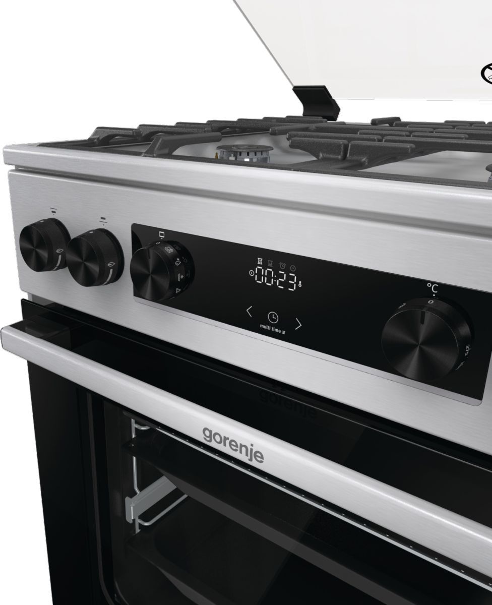 Плита Gorenje комбінована, 71л, 60x60см, дисплей, чавун,з кришкою, програматор IconLed,нерж