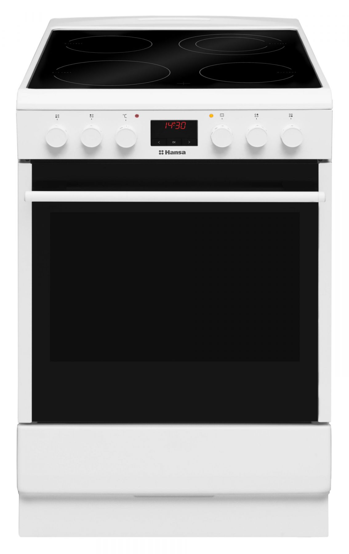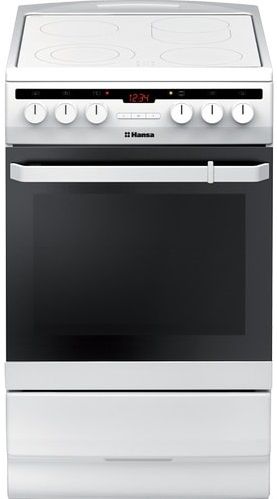 Hansa FCCW58208 – це сучасна електроплита з елегантним білим дизайном і склокерамічною варильною поверхнею. Вона оснащена 4 зонами нагріву та духовкою на 65 літрів із конвекцією, що забезпечує рівномірне приготування страв.