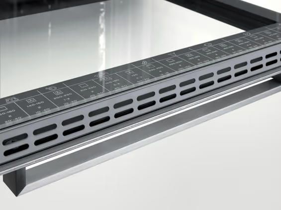 Особливості:знімні дверцята, висувна шухляда для посуду на роликах, рецепти на внутрішньому склі дверцят, 5 рівнів встановлення дека, час нагрівання до 180°C: 5.5 хв, максимальна температура зовнішнього скла дверцят духової шафи: 75 °C