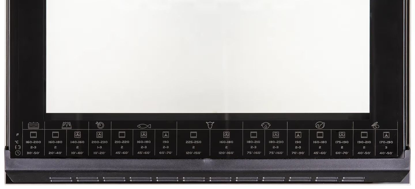 Особливості:знімні дверцята, рецепти на внутрішньому склі дверцят, 5 рівнів встановлення дека, максимальна температура зовнішнього скла дверцят духової шафи: 72 °C, час нагрівання до 180 °C: 9 хв