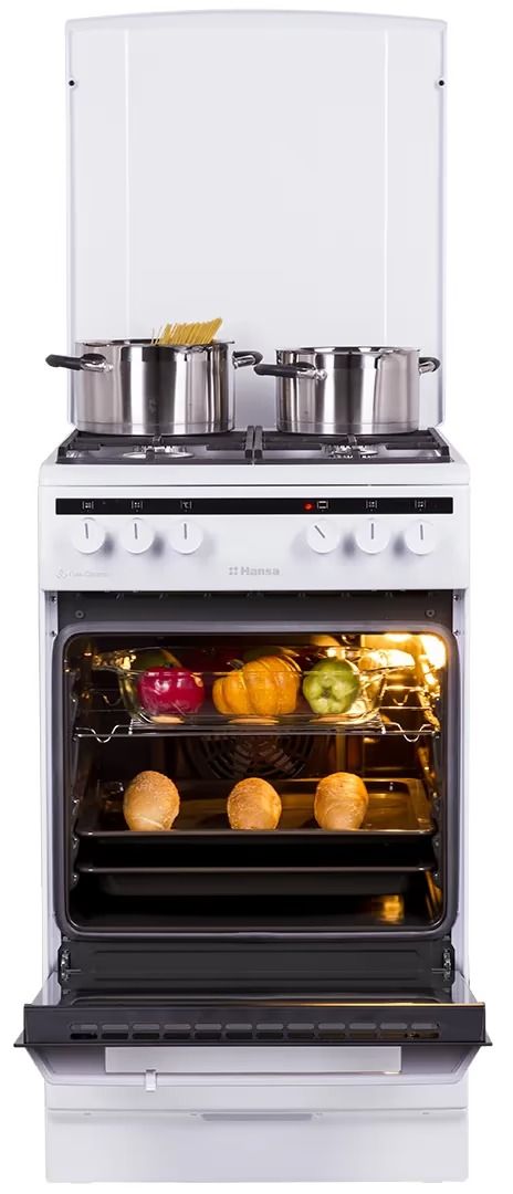 Плита Hansa комбінована, 62л, 50x60см, конвекція, чавун, білий