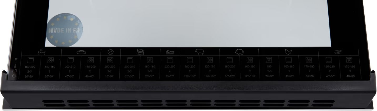 Особливості:висувна шухляда для посуду на роликах, рецепти на внутрішньому склі дверцят, 5 рівнів встановлення дека, час нагрівання до 180°C: 5.5 хв, максимальна температура зовнішнього скла дверцят духової шафи: 75 °C, максимальна температура зовнішнього скла дверцят духової шафи: 76 °C]