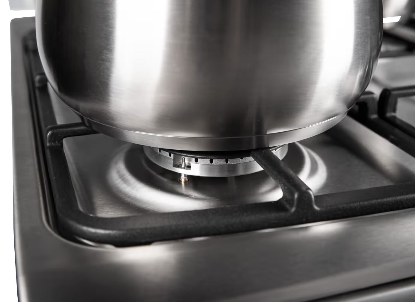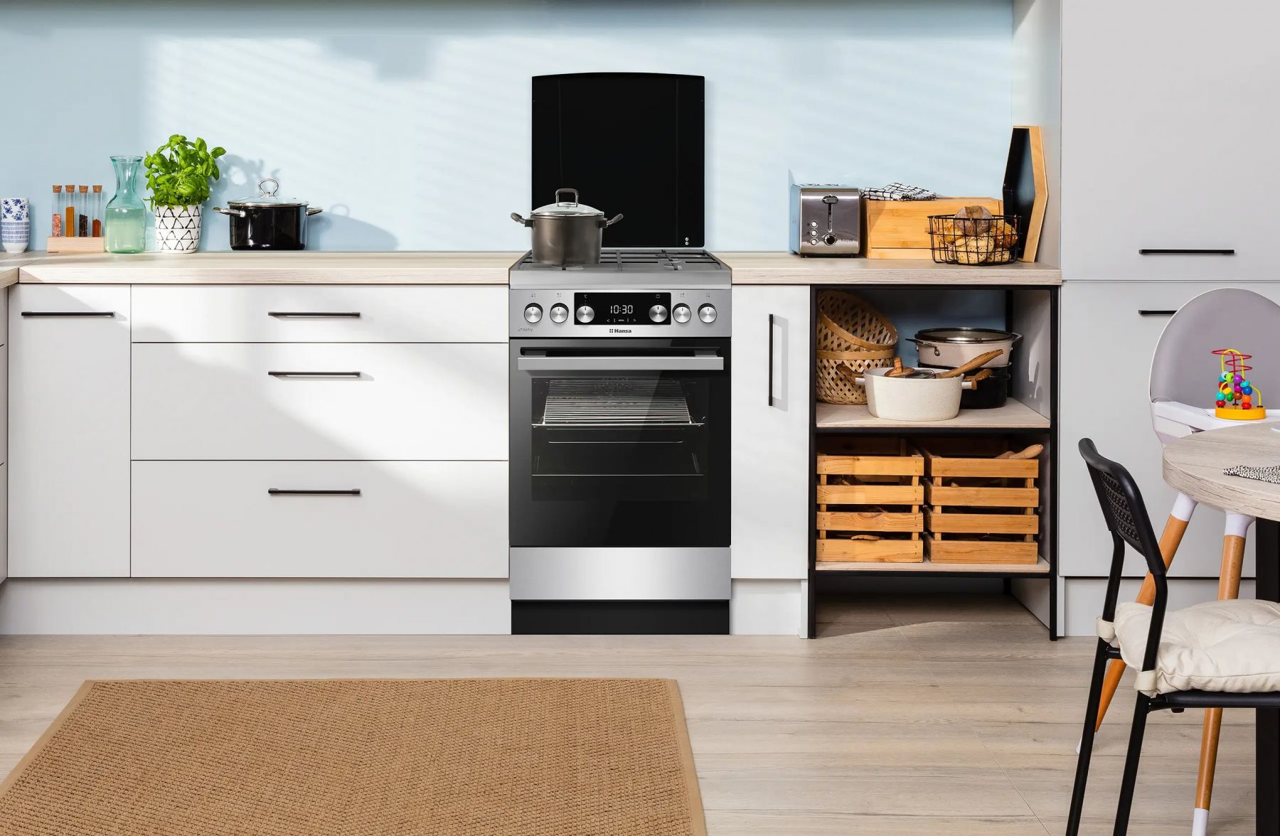 Hansa FCMS582254 – це сучасна комбінована плита, що поєднує стильний дизайн і зручність у використанні. Газова варильна панель із чавунними ґратами та автоматичним запалюванням гарантує ефективне приготування. 62-літрова електрична духовка з конвекцією, грилем і 8 програмами дозволяє готувати ще швидше та смачніше.