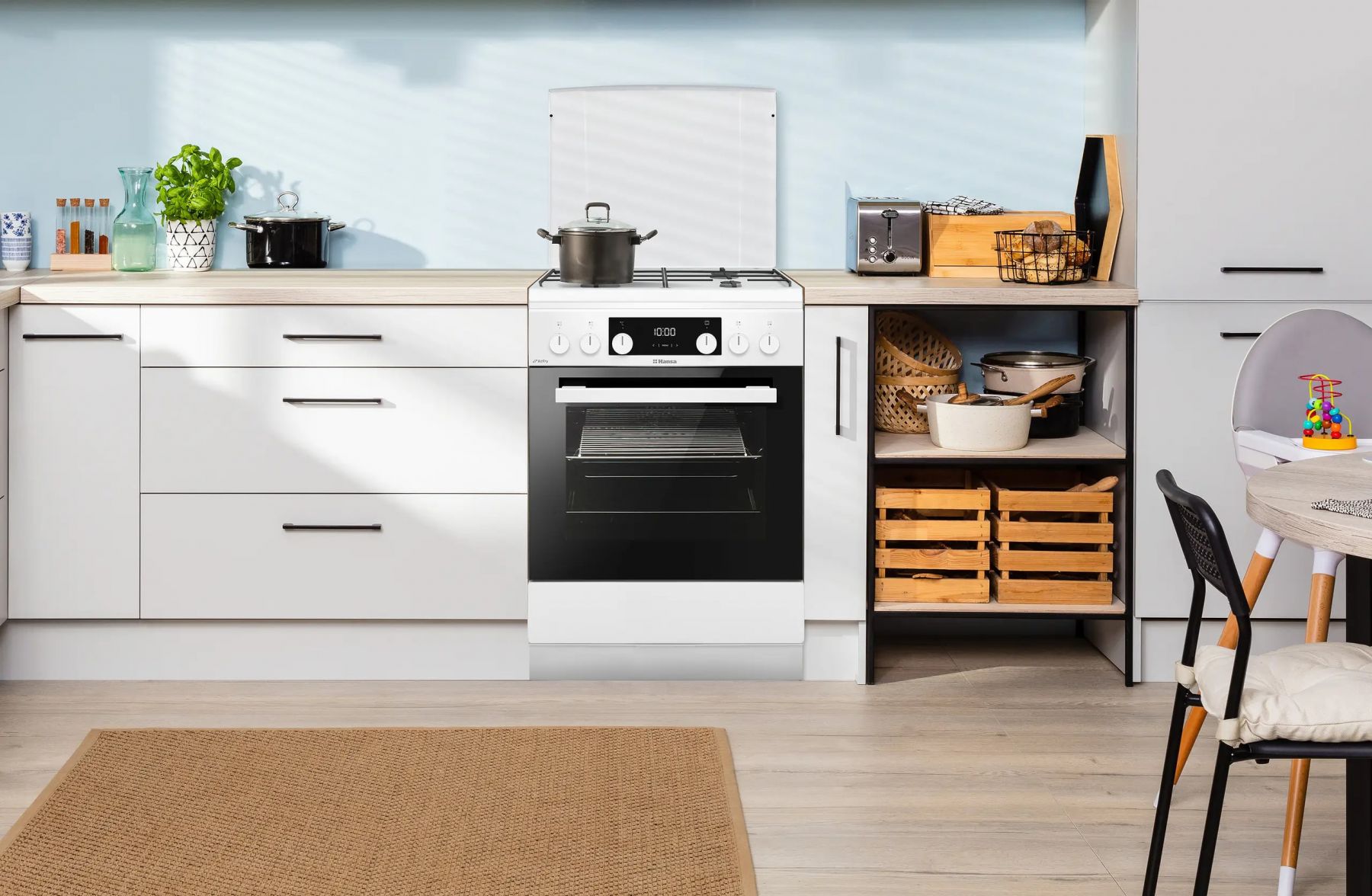 Плита Hansa комбінована, 77л, 60x60см, дисплей, конвекція, чавун, білий