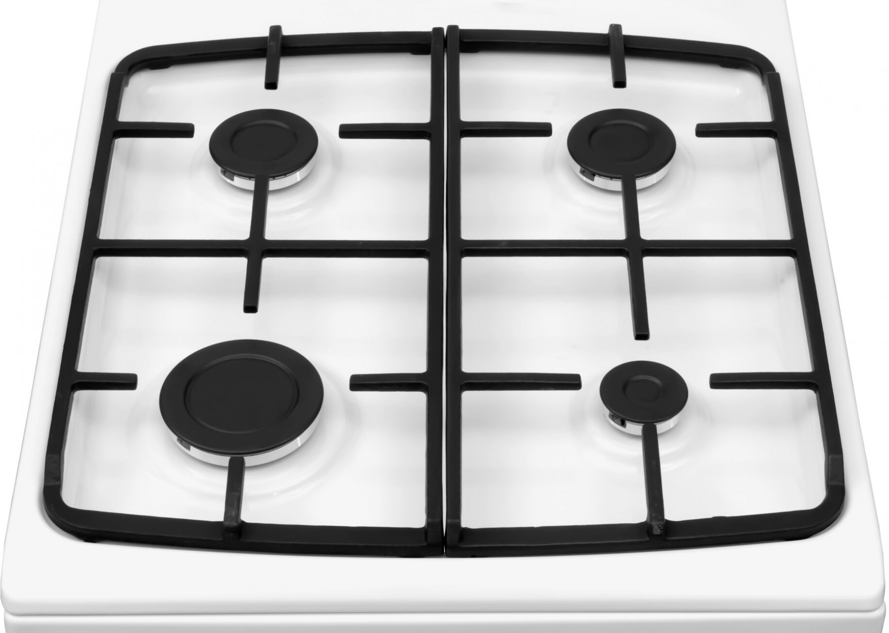 Комбінована плита з газовою варильною поверхнею та електричною духовкою об’ємом 62 л. Має 8 програм приготування, включаючи гриль, конвекцію та швидкий розігрів. Варильна поверхня обладнана чавунними решітками і електрозапалюванням у ручках.
