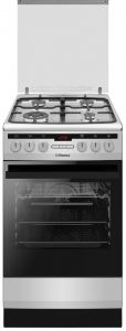 Плита з газовою варильною поверхнею та електричною духовкою об’ємом 62 л. Оснащена 8 програмами, серед яких гриль, розморожування та швидкий розігрів. Варильна поверхня має 4 газові конфорки з чавунними решітками, газ-контролем і електрозапалюванням у ручках.