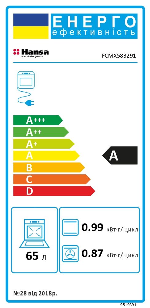 Особливості:висувна шухляда, внутрішнє освітлення (галогенні лампи), максимальна температура зовнішнього скла дверцят духової шафи 76 °C, 5 рівнів для випікання, Час розігріву до 180°C: 5 хв