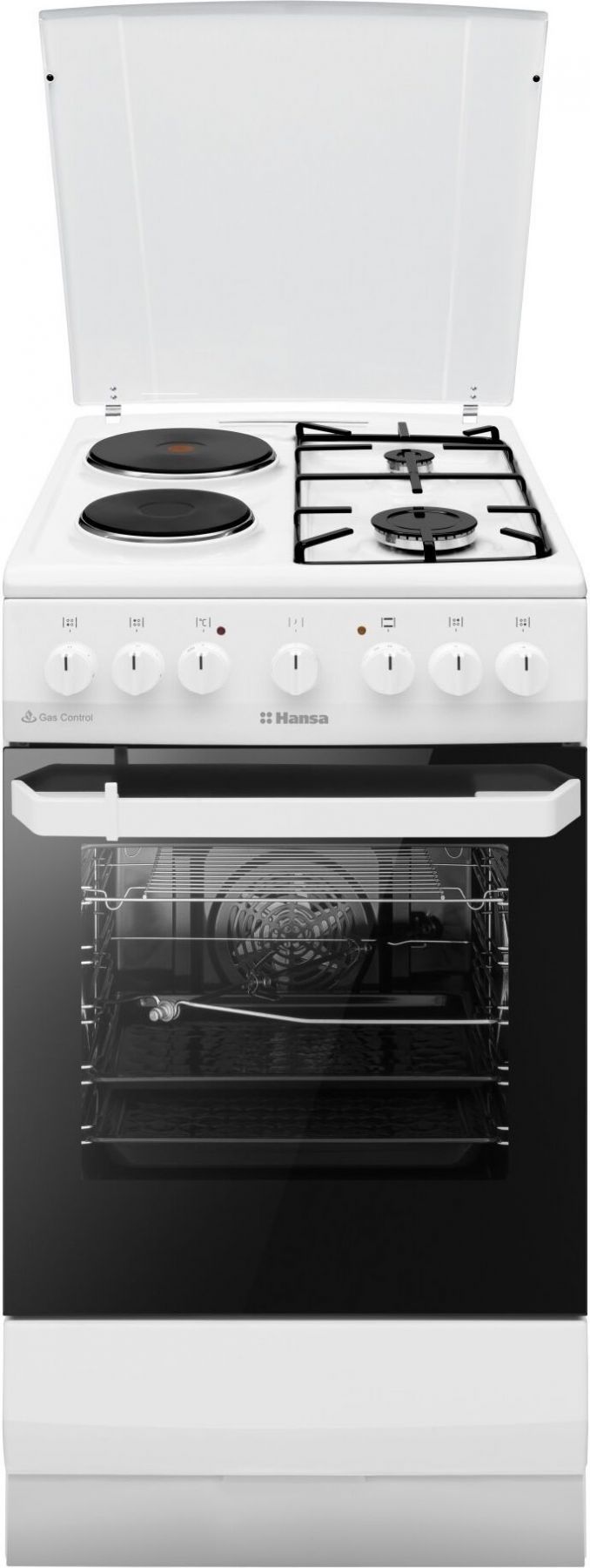 Плита з комбі. вар. поверхнею Hansa, 50х60см, 65л, емаль, газ контр., білий
