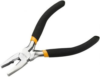 Міні-пасатижі довжиною 115 мм є різновидом шарнірно-губцевого інструменту, який широко застосовується при ремонті різної техніки і обладнання, а також при виконанні слюсарних і електромонтажних робіт. Пристосування виготовлено з високоміцної CrV-сталі з чорним покриттям, що захищає інструмент від стирання. Двокольорова пластикова ручка забезпечує комфорт утримання інструменту в руці.
