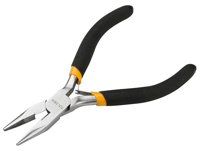 Міні-довгогубці довжиною 115 мм є різновидом механічного інструменту, який призначений для утримання дрібних деталей, цвяхів, дротів, в тому числі при роботі у важкодоступних місцях. Пристосування виготовлено зі спеціальної кованої сталі з нікельованим покриттям, що робить його міцним і зносостійким. Конструкція включає пружну скобу. Двошарове покриття двокольорових безшовних ручок забезпечує антиковзаючий ефект і комфортне утримання інструменту в руці.