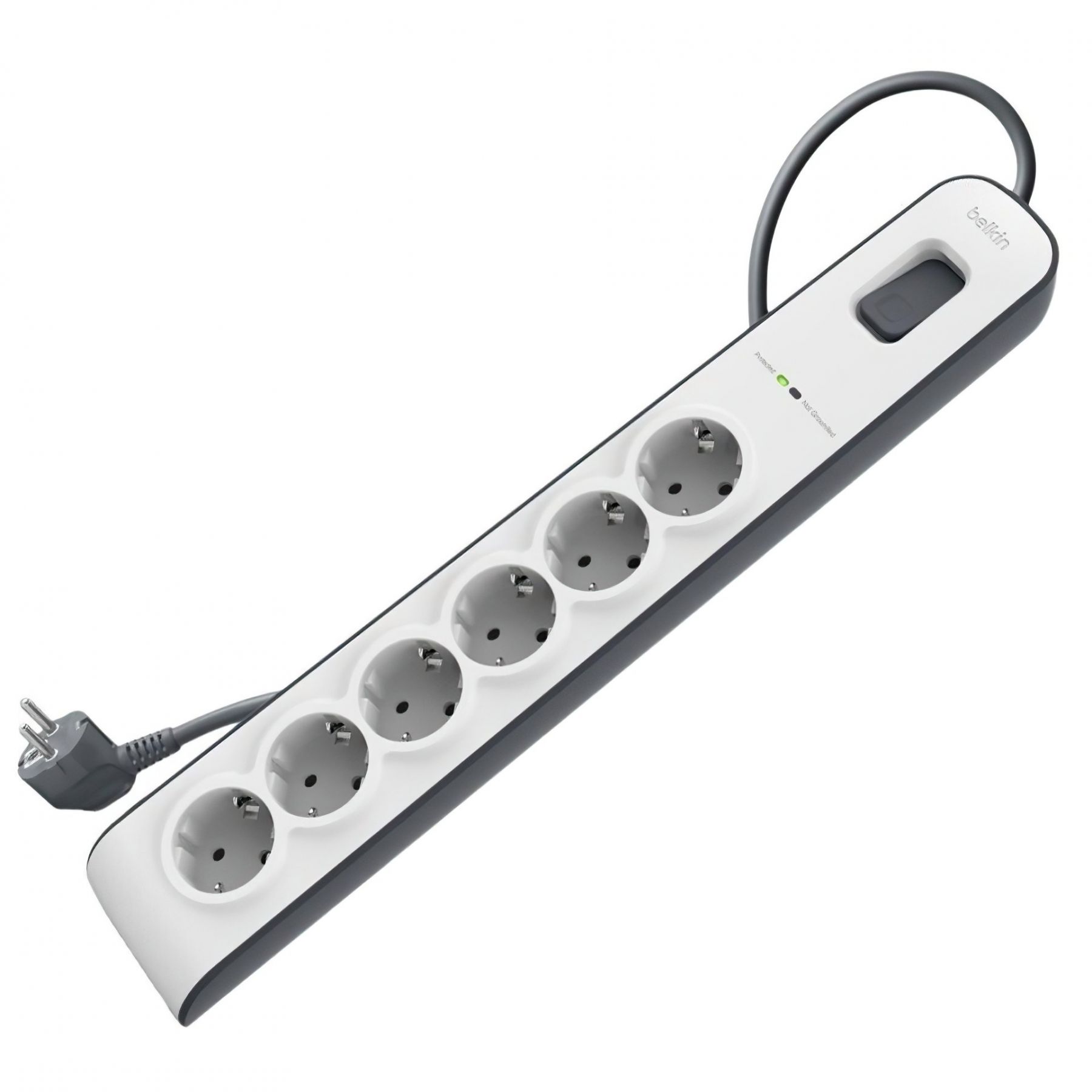Belkin Surge Protectors захищає підключені пристрої від пошкодження внаслідок коливань напруги та стрибків електрики, таких як удари блискавки та порушення в електроживленні. Захист від перепаду перенапруги може запобігти дорогому ремонту та втраті цінних даних та продовжити термін служби пристрою.