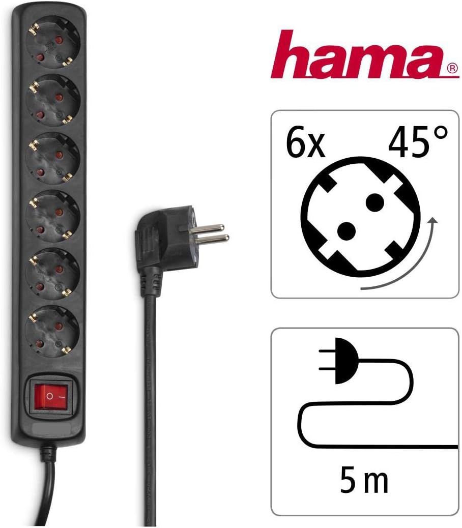 Подовжувач-фільтр мережевий Hama 6xТип F, 3x1.5мм кв, 16A, 5м, чорний