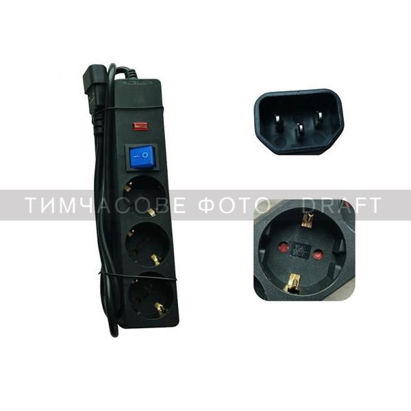 Подовжувач мережевий 2E 3xТип F, 1xC14, 3x1мм кв, 10A, 1м, чорний