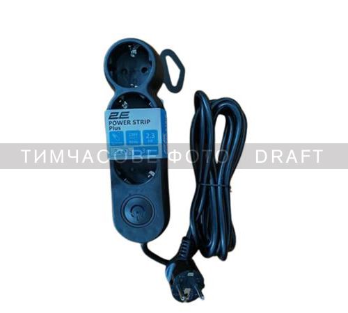 Подовжувач мережевий 2E Plus 3хТип F, 3х1мм кв, 10A, 3м, чорний