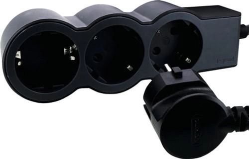 Подовжувач СТАНДАРТ 3х2К+З розетки, 16 А, з кабелем 5 м, колір Чорний
