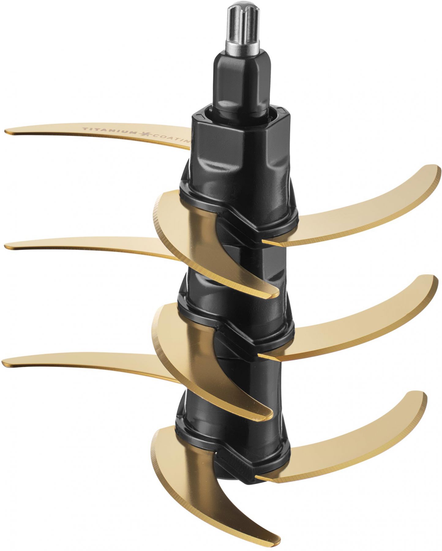 Особливості:Протиковзкі ніжки для безпроблемного використання, Плавне регулювання швидкості, Легке керування та очищення, 9 титанових лез, ідеальна продуктивність, Металевий з'єднувач