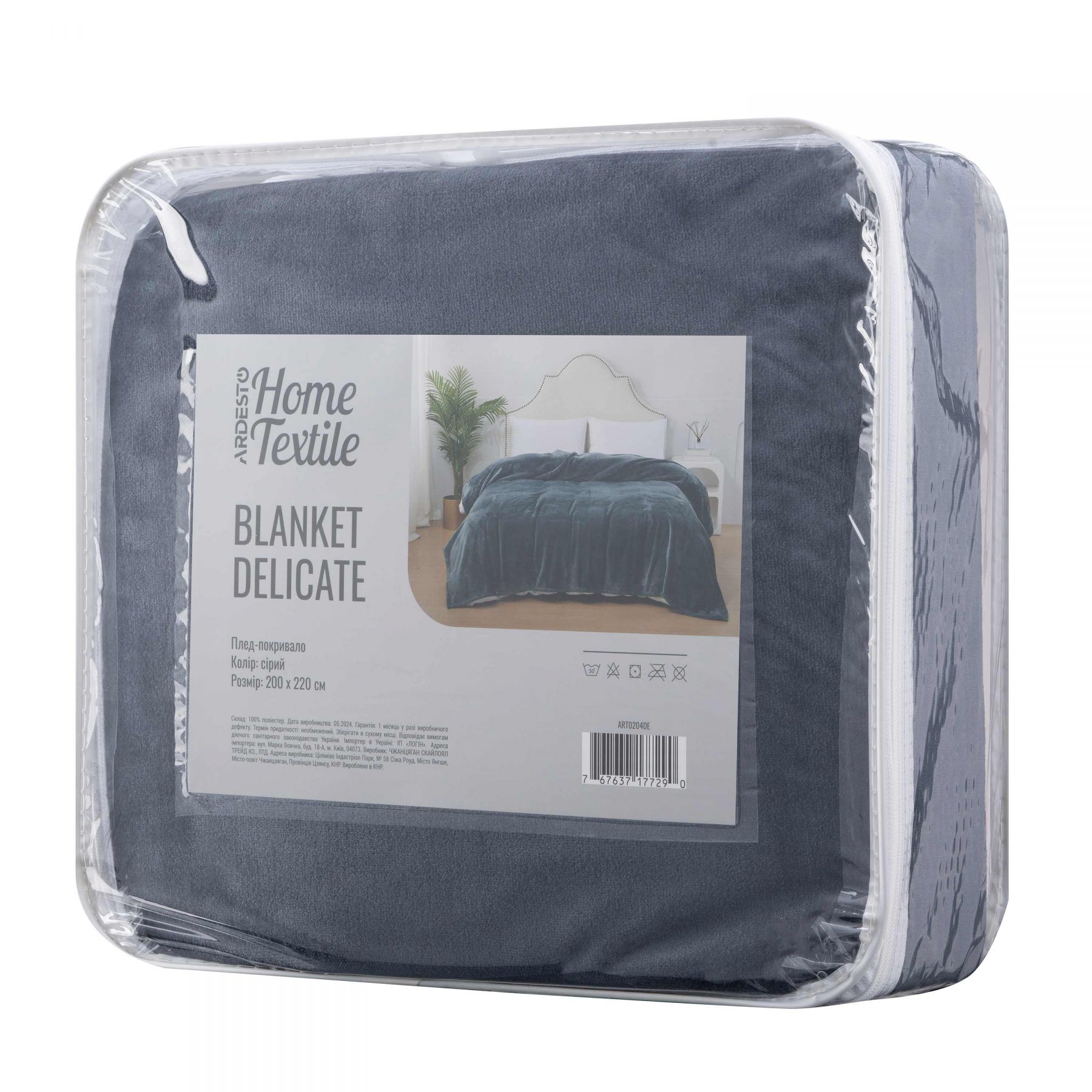 Покривало Ardesto Delicate 200х220см, 100% поліестер, сірий