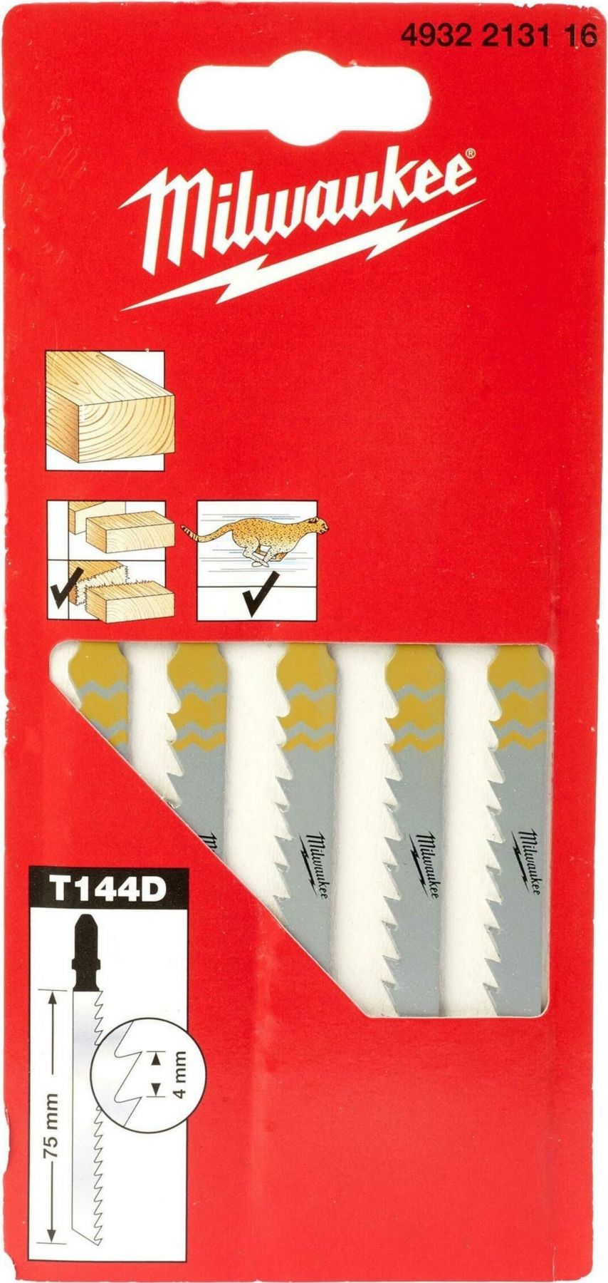 Полотно пиляльне для електролобзика Milwaukee T144D по дереву, крок зуба 4мм х 75мм, 5шт