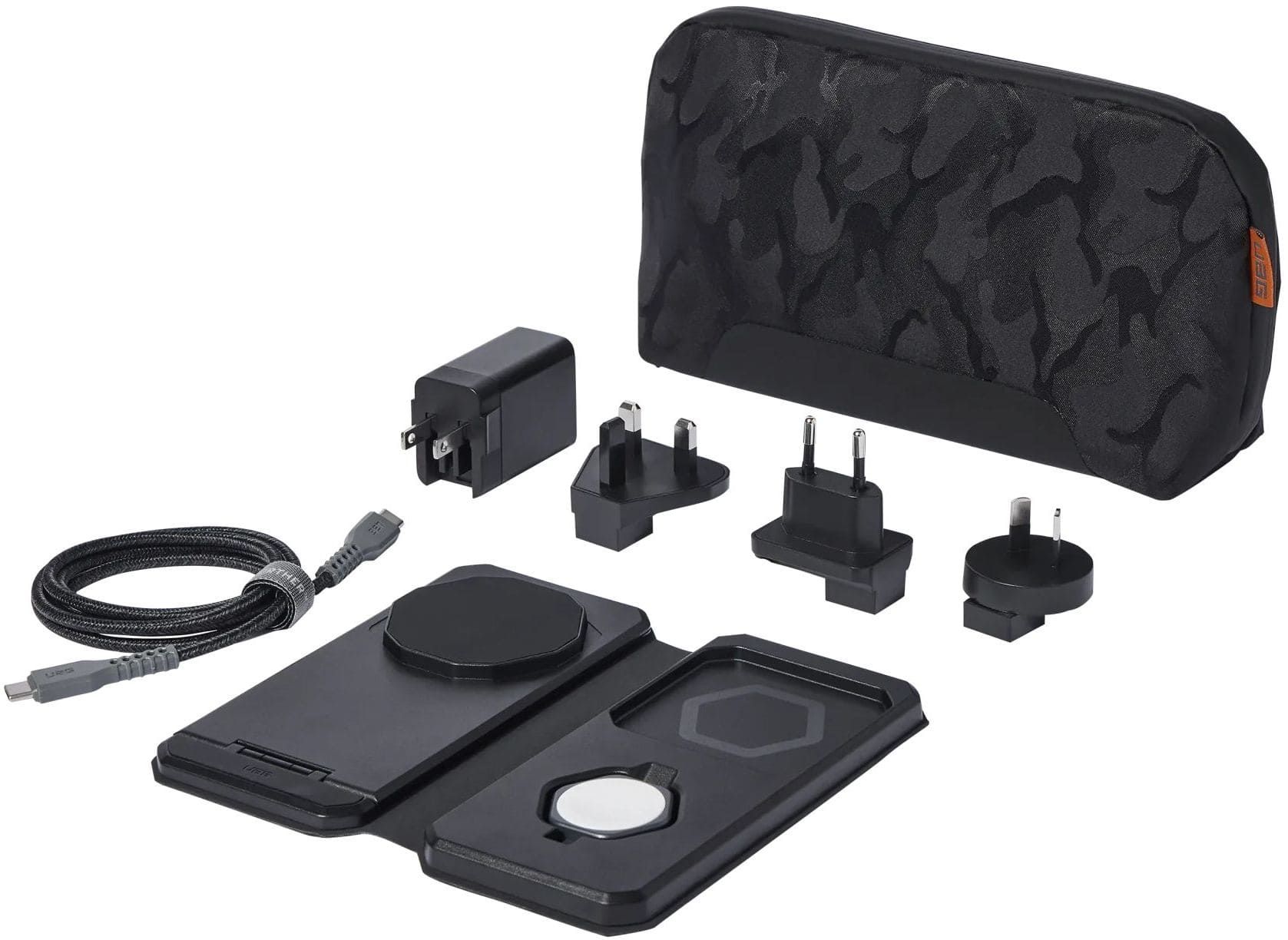 Зарядний пристрій UAG 3-в-1, універсальне рішення, покликане спростити процес заряджання. Завдяки складаній конструкції він ідеально підходить для будь-якого сценарію - чи то на робочому столі, тумбочці, або як супутника в подорожі.