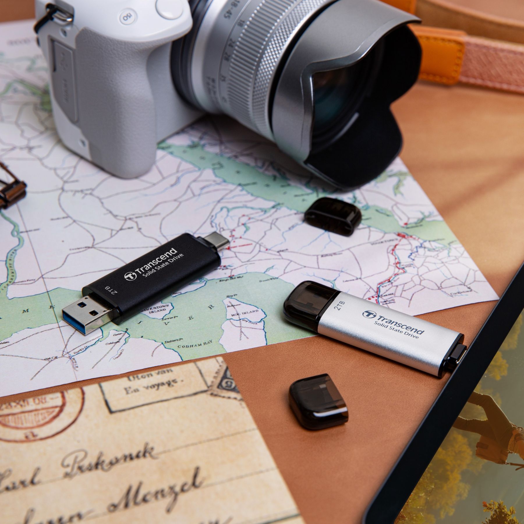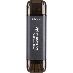 Transcend ESD310 512 GB — портативний SSD у форм-факторі «флешки» з двома роз’ємами USB‑A і USB‑C та інтерфейсом USB 3.2 Gen 2 (10 Гбіт/с). Забезпечує швидкість читання до 1050 МБ/с і запису до 950 МБ/с завдяки сучасній NAND-пам’яті та SLC-кешу. Компактний (71×20×7,8 мм, 11 г) та міцний завдяки алюмінієвому корпусу. Підходить для будь-яких пристроїв — ПК, Mac, Android, Steam Deck, PS5, Xbox тощо. Працює просто — plug & play, exFAT за замовчуванням. Має знімні ковпачки для захисту роз’ємів та надійну 5-річну гарантію. Ідеальний для зберігання фото, 4K-відео, геймінгу та резервного копіювання.