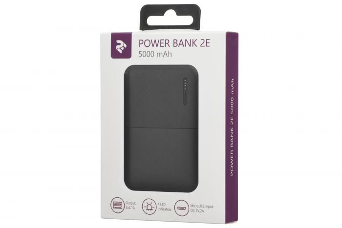 Портативний зарядний пристрій Power Bank 2E 5000mAh, DC 5V, 2.1A, 4 LED indicator, black