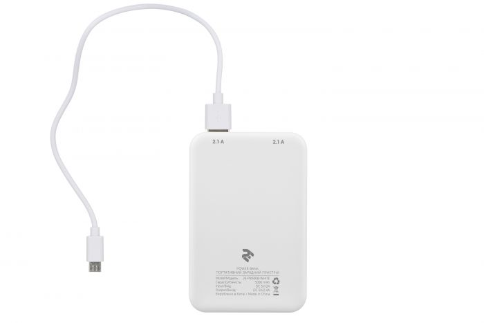 Портативний зарядний пристрій Power Bank 2E 5000mAh, DC 5V, 2.1A, 4 LED indicator, white