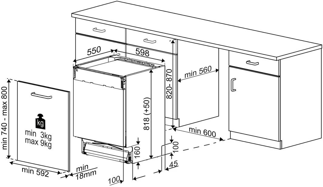 Короби для посуду:Тримач для дека, Складні тримачі у верхньому кошику, Третій кошик, верхня корзина