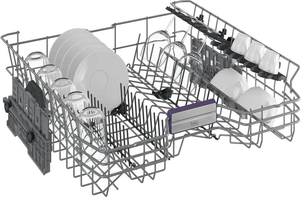 Вбудована посудомийна машина Beko BDIN36532 — це енергоефективне рішення класу A+++, розраховане на 15 комплектів посуду. Оснащена сенсорами забруднення, світлодіодною індикацією, зручним дисплеєм і третім кошиком для столових приладів.