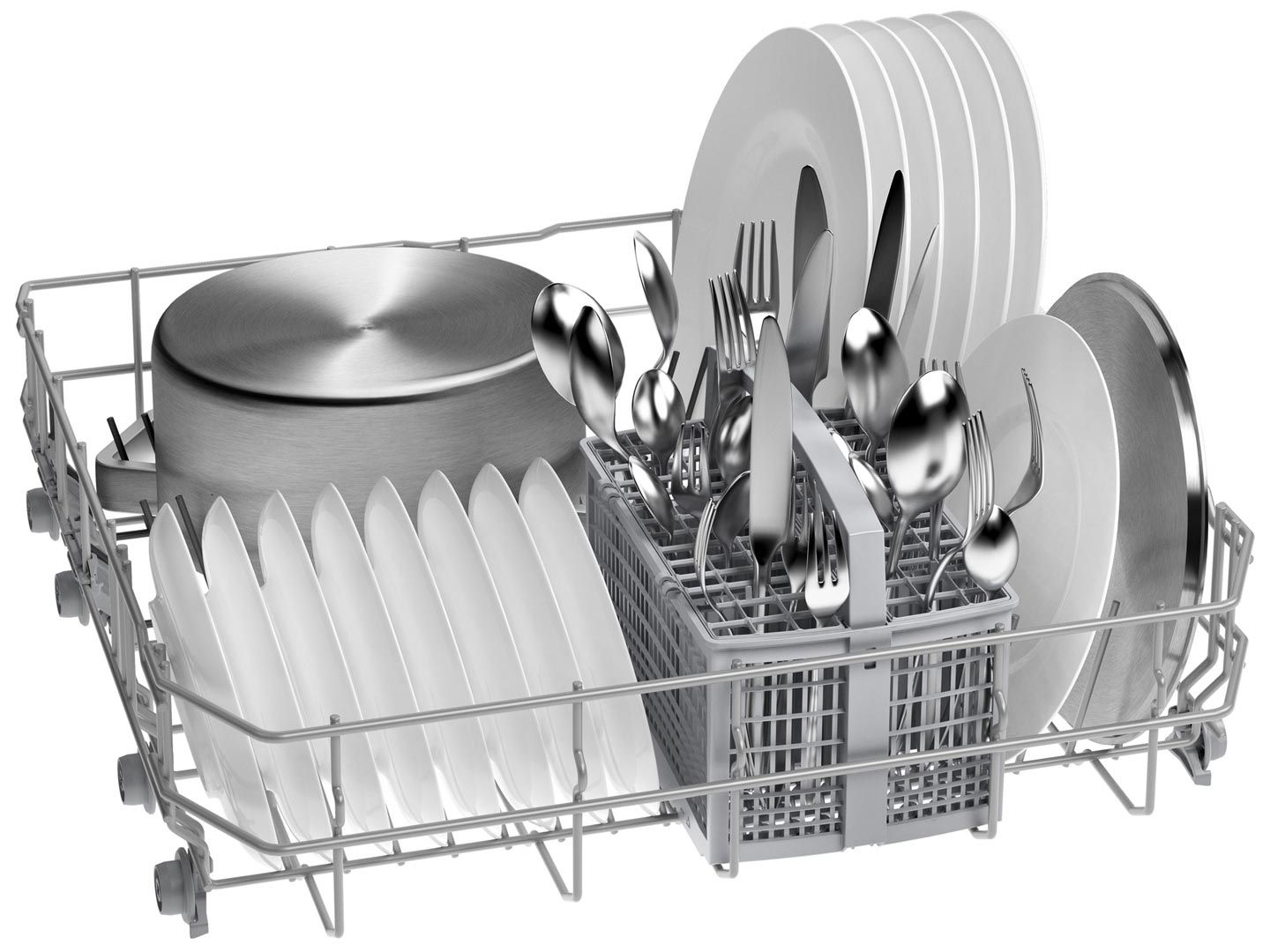 Bosch SMS26DI00T — це окремовстановлювана посудомийна машина серії 2, яка поєднує в собі ефективність, зручність та стильний дизайн. Завдяки двигуну EcoSilence Drive, система працює тихо (48 дБ) та енергоефективно (клас A+). Функції ExtraDry та HygienePlus забезпечують ідеальну чистоту та сухість посуду, а система RackMatic дозволяє регулювати верхній короб для оптимального розміщення посуду.