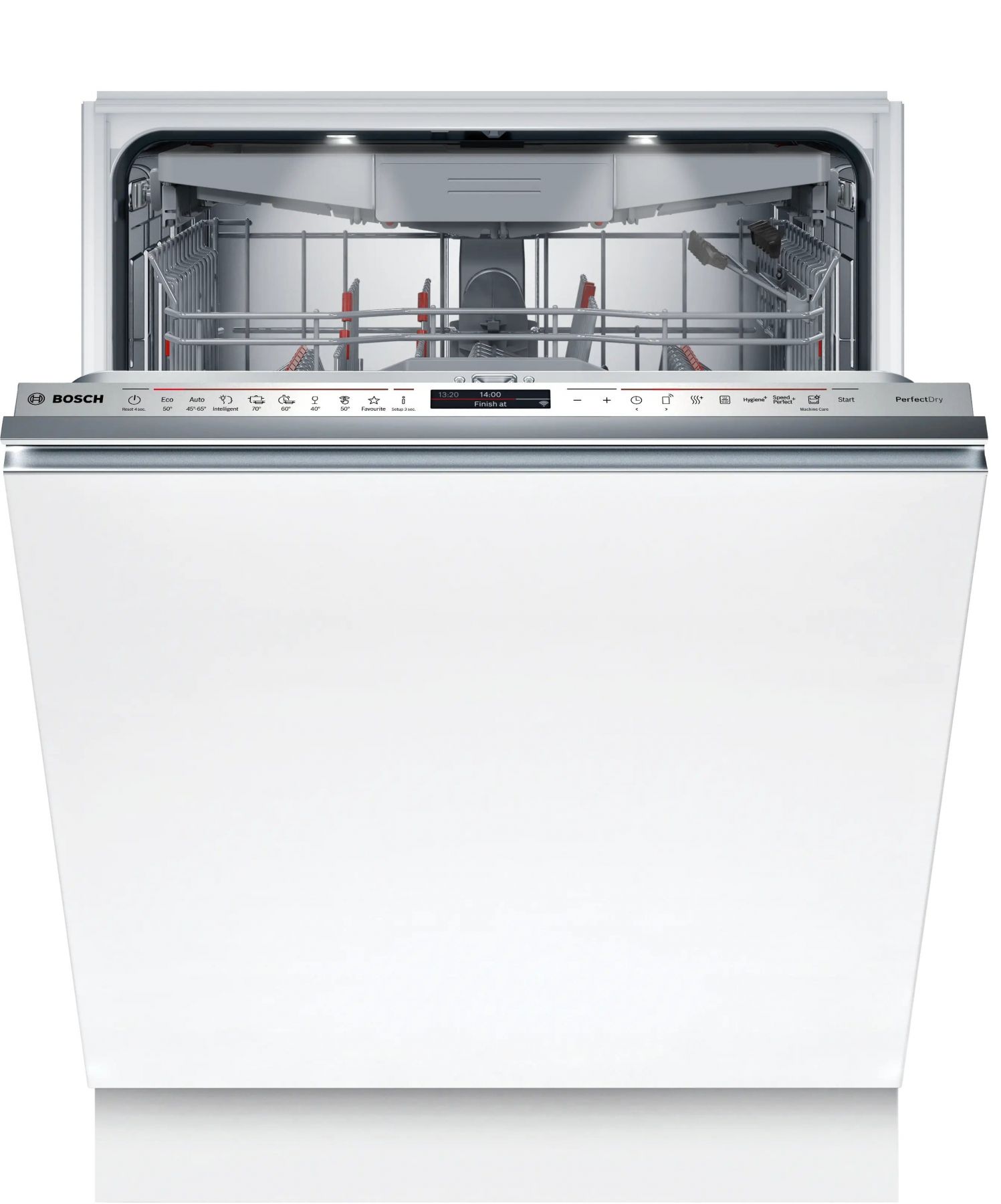 Посудомийна машина Bosch вбудована розрахована на миття до 14 комплектів посуду за один цикл. Модель має клас енергоефективності A, підтримує сушіння за технологією Zeolith та оснащена двигуном EcoSilence Drive. Передбачено набір автоматичних програм і керування через Home Connect. Конструкція поєднує гнучку систему коробів і функції для щоденного використання.