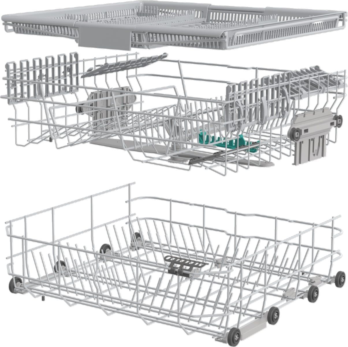 Оснащення:3 корзини, складні нижні тримачі для тарілок, Верхній кошик, Нижній кошик, Верхній лоток