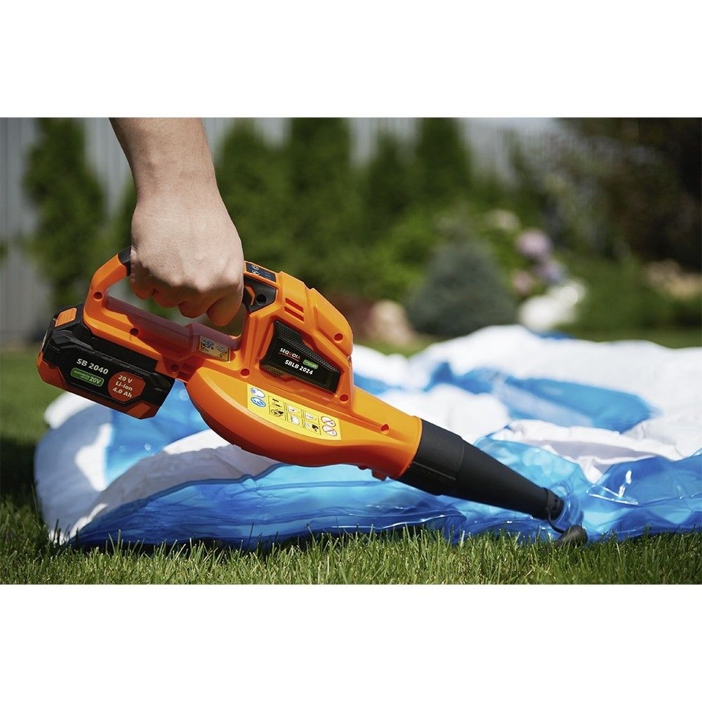 Повітродув акумуляторний SEQUOIA SBLB2024 працює від батареї 20 В і призначений для прибирання опалого листя, трави, пилу та легкого сміття на садових ділянках, доріжках, терасах і в гаражі. Швидкість повітряного потоку досягає 241 км/год при 13500 об/хв, що дозволяє ефективно здувати сухе листя та скошену траву. Інструмент має два режими роботи для регулювання сили потоку залежно від завдання. Вага 1.1 кг робить його зручним для тривалої роботи однією рукою без швидкої втоми. Модель поставляється без акумулятора та зарядного пристрою.