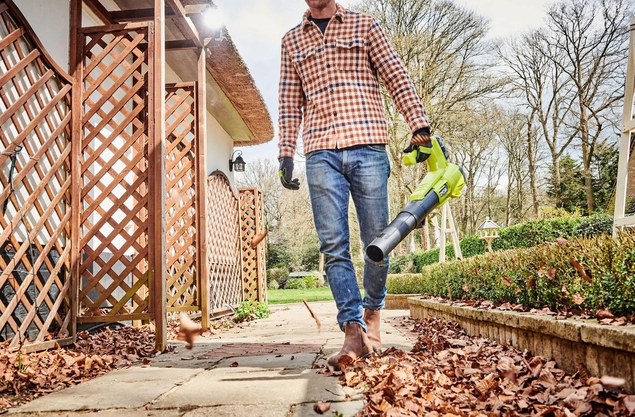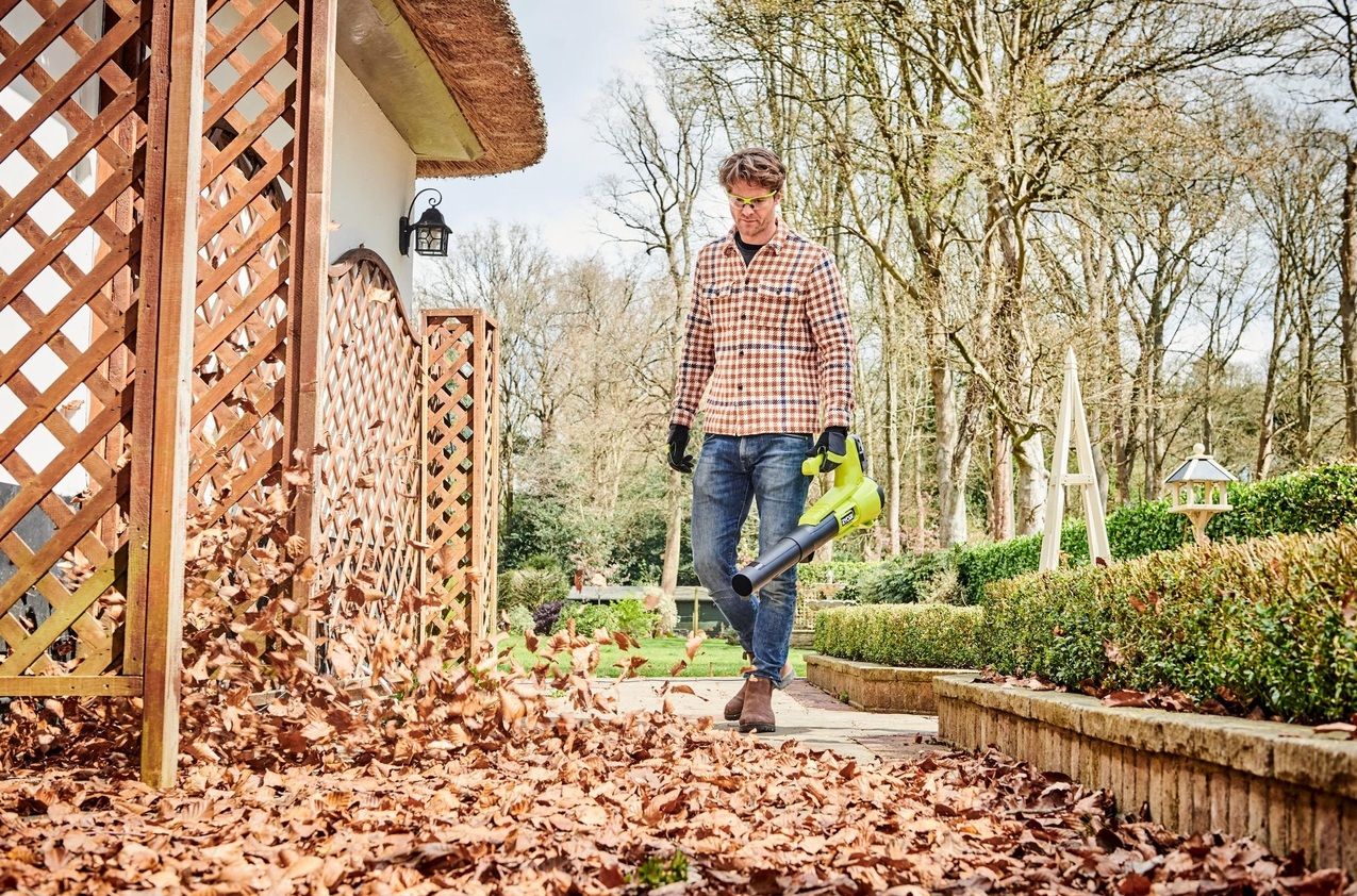 Акумуляторний повітродув Ryobi RY18BLA-0 ONE+ 18В (код товару: 5133005411) відмінний інструмент для видалення сміття з різних поверхонь, як біля будинку, на доріжці, в альтанці, так і в саду, на ділянці. Легка конструкція та досить комфортна в роботі для ефективного видалення липкого вологого листя з твердих поверхонь, особливо у поєднанні зі скребком.