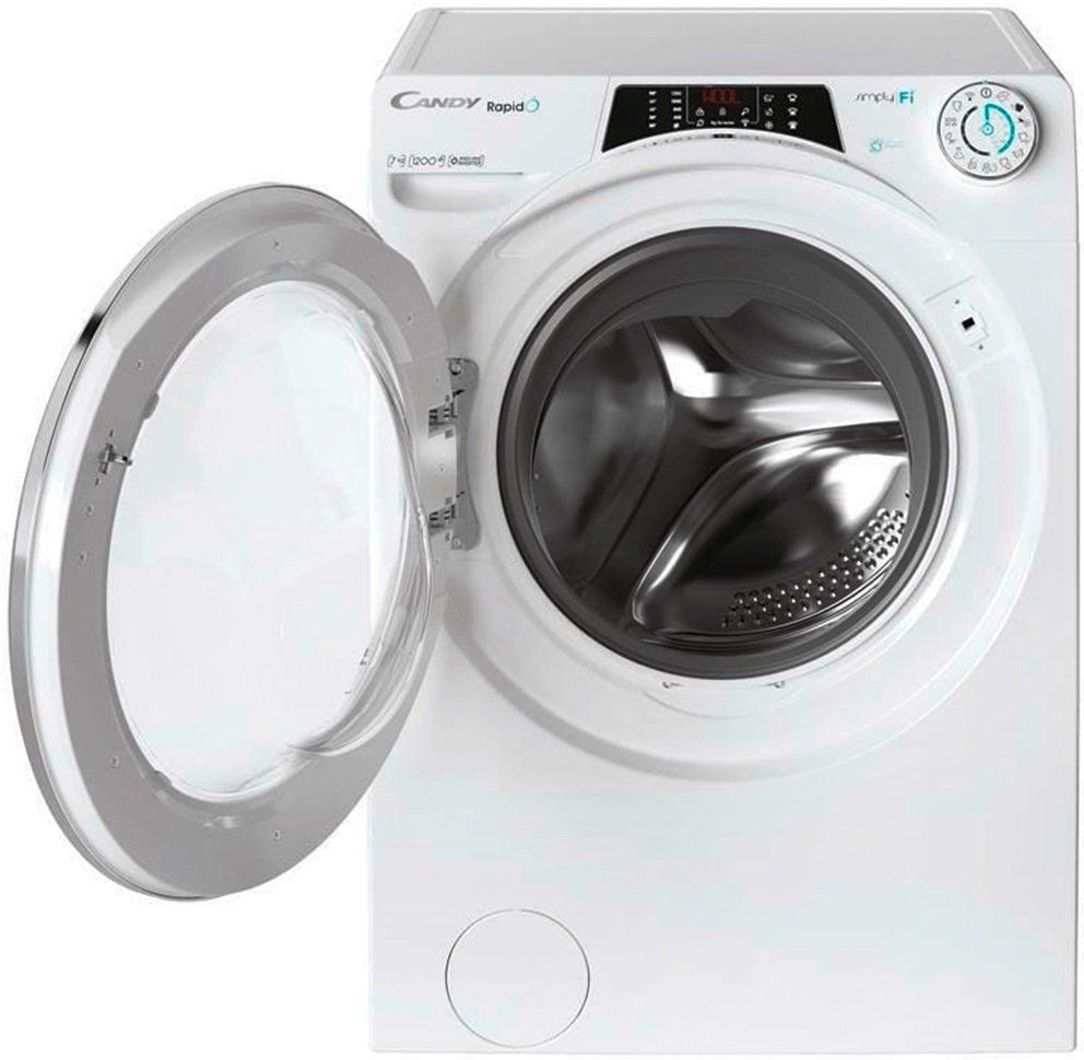 Пральна машина Candy фронтальна, 7кг, 1200, A+++, 45см, дисплей, пара, інвертор, білий. З Candy RapidÓ більше не потрібно вибирати між заощадженням часу та ідеальними результатами прання: завдяки двигуну з унікальною технологією Speed Drive ефективність прання покращилась на 50% (в порівнянні з традиційними двигунами), що забезпечує найкращий результат циклів швидкого прання.