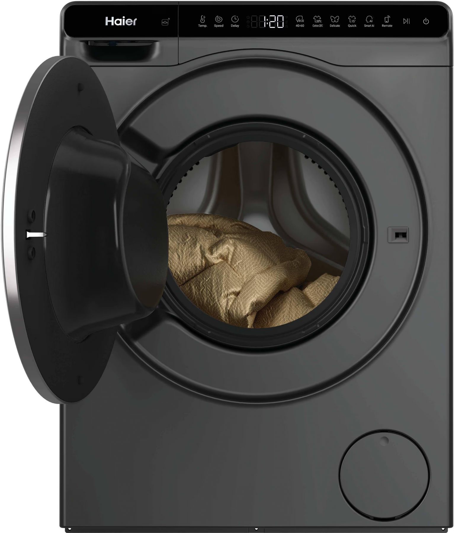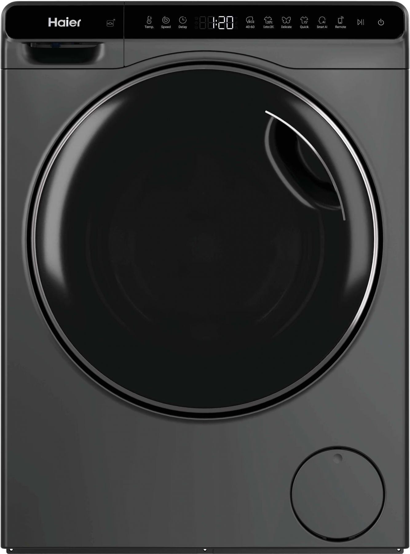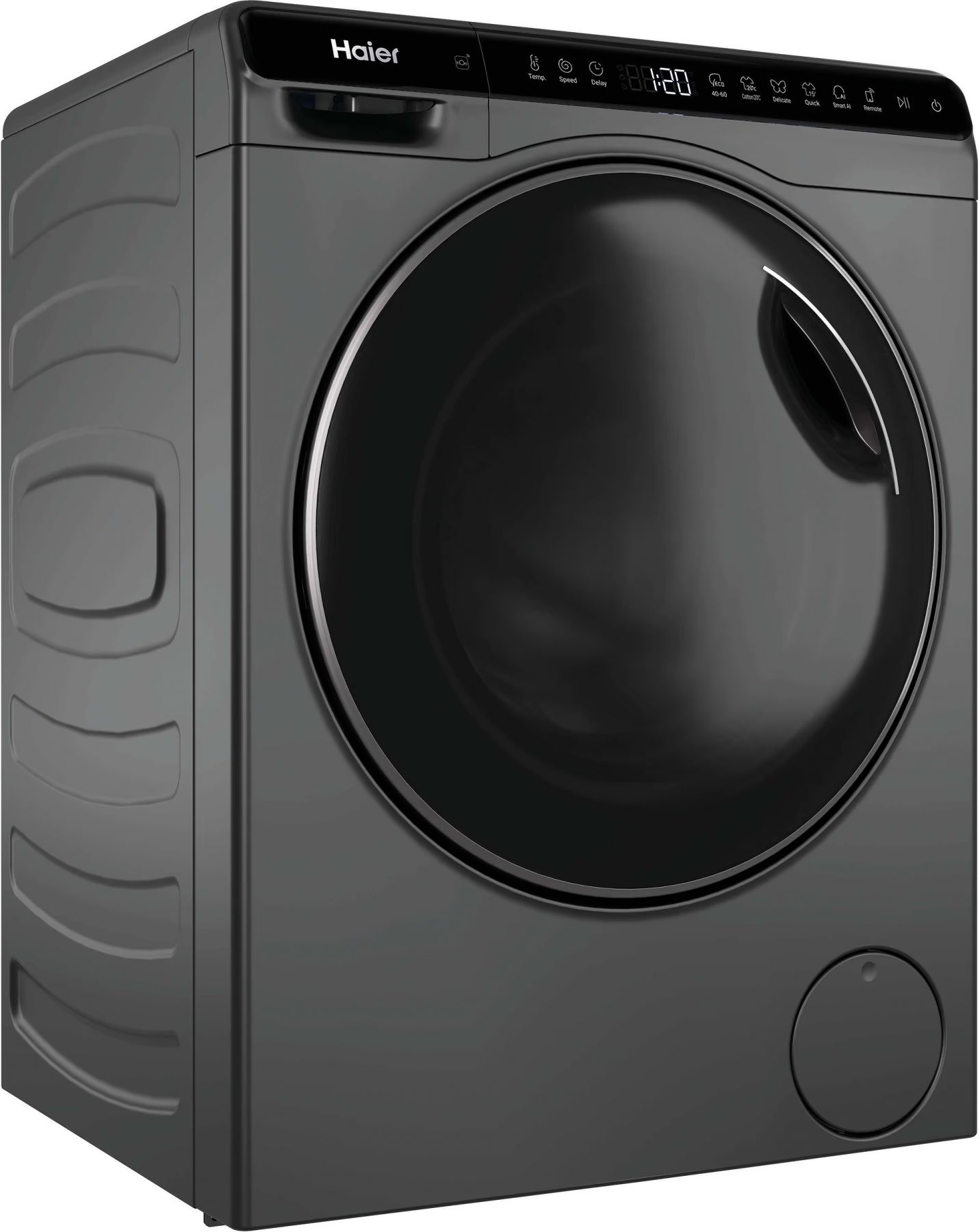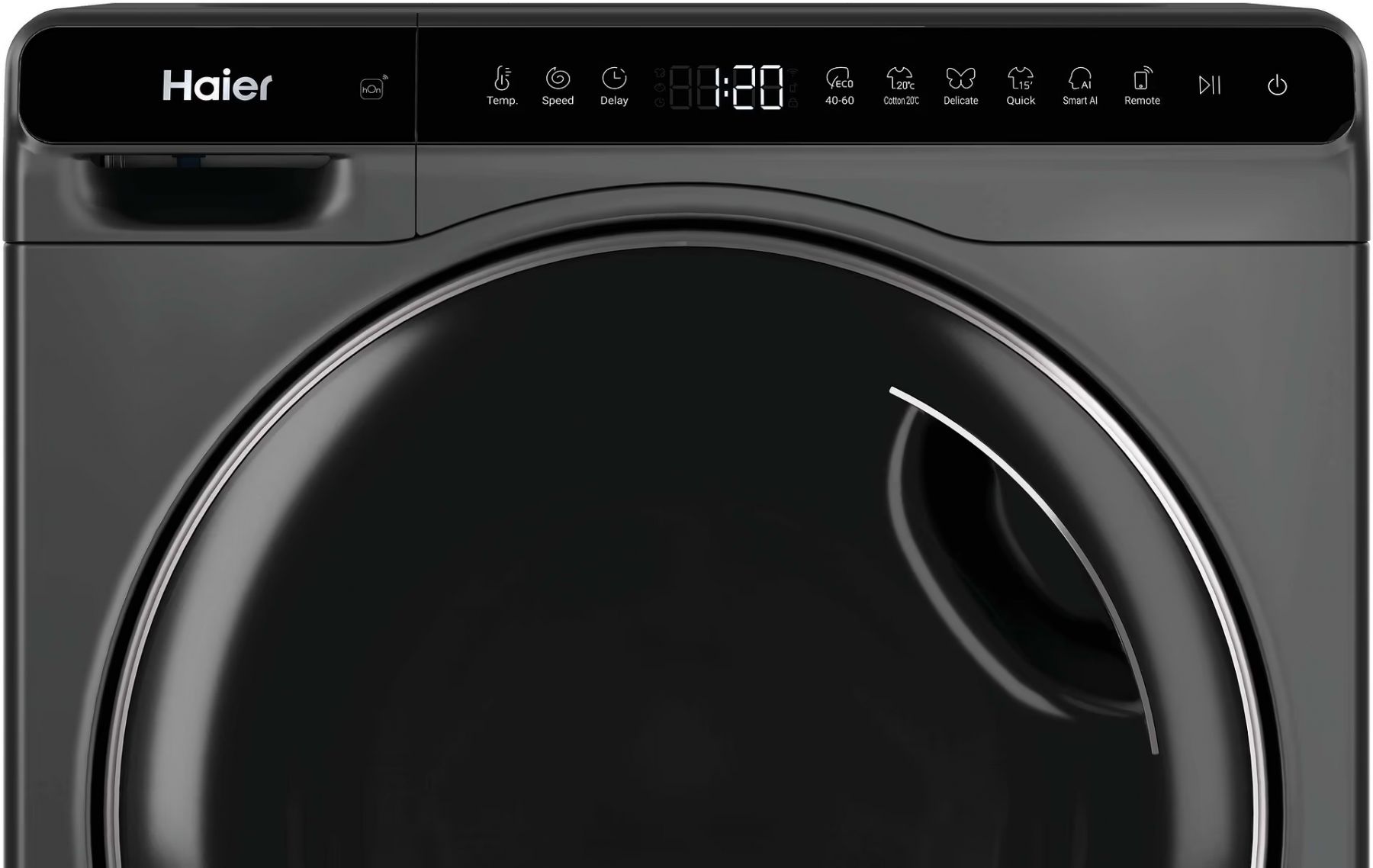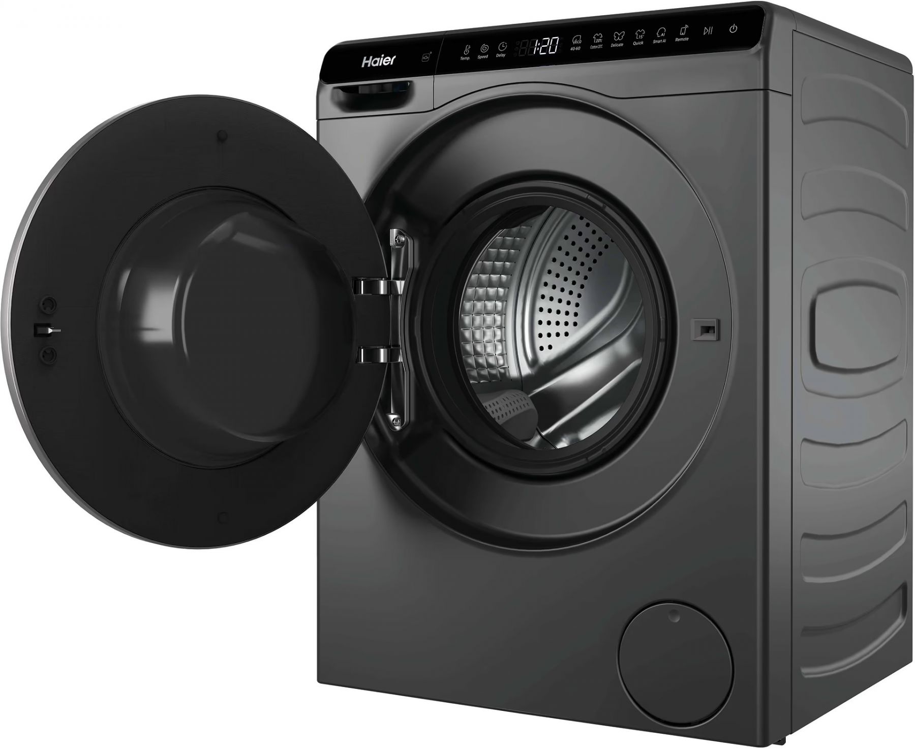 Пральна машина Haier фронтальна, 5кг, 1200, A, 42.3см, дисплей, інвертор, люк чорний, Wi-Fi, висота 70см, cріблястий