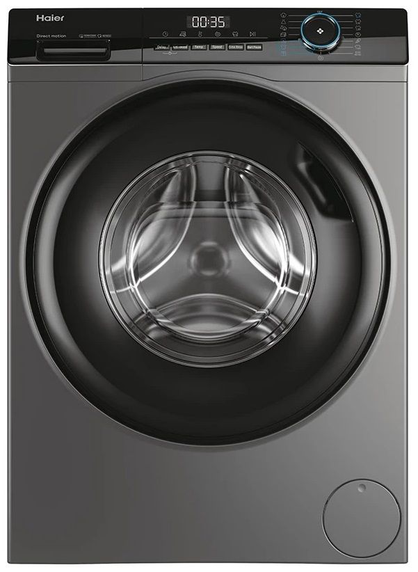 Пральна машина Haier фронтальна, 8кг, 1400, A+++, 56см, дисплей, пара, інвертор, люк чорний, прямий привід, cріблястий