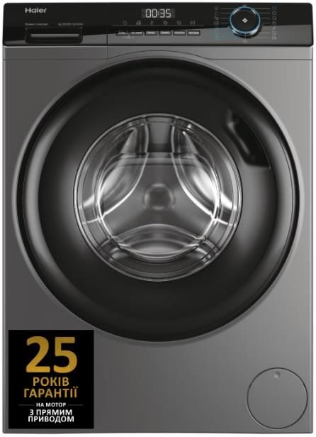 Пральна машина Haier фронтальна, 9кг, 1400, A+++, 60см, дисплей, пара, інвертор, люк чорний, прямий привід, cріблястий