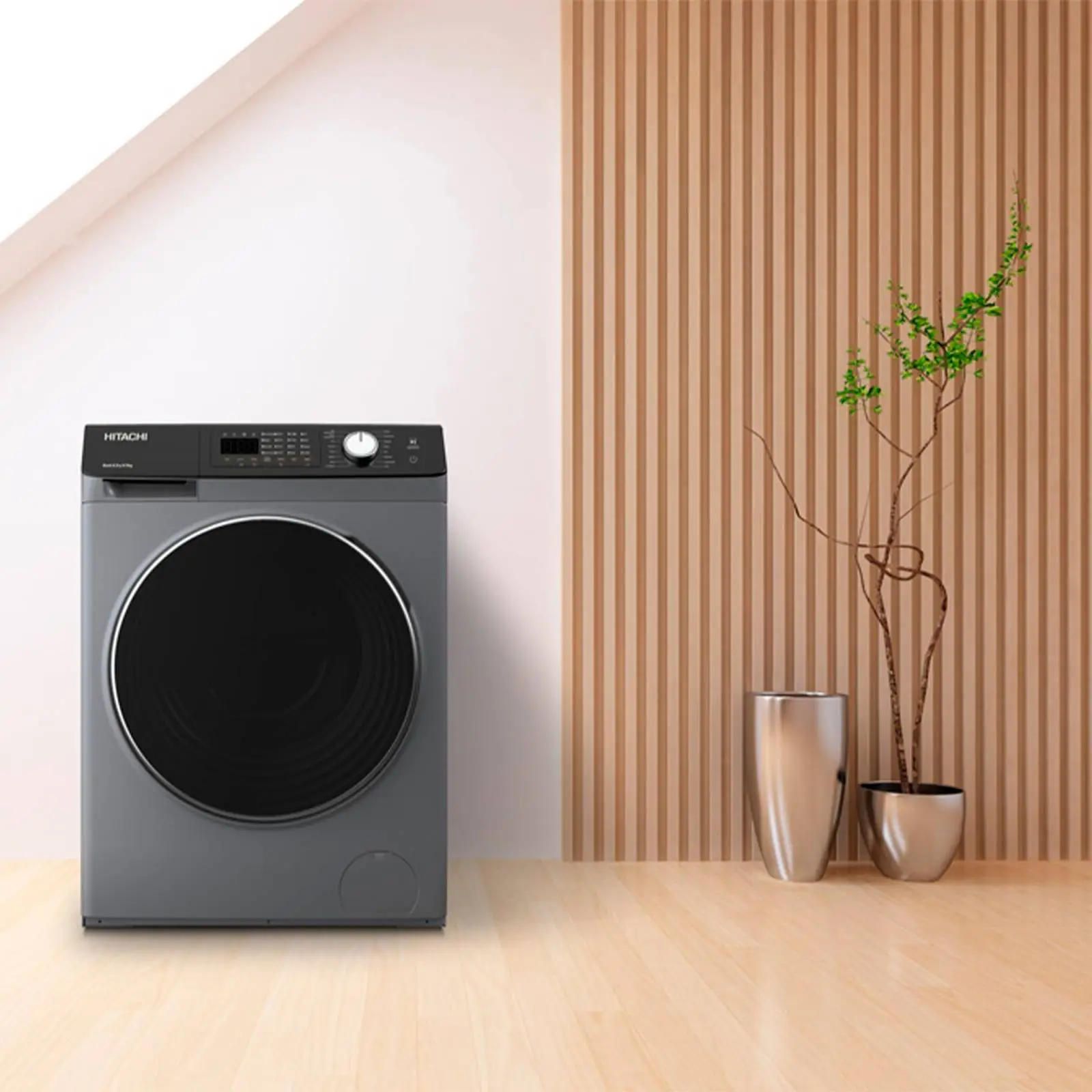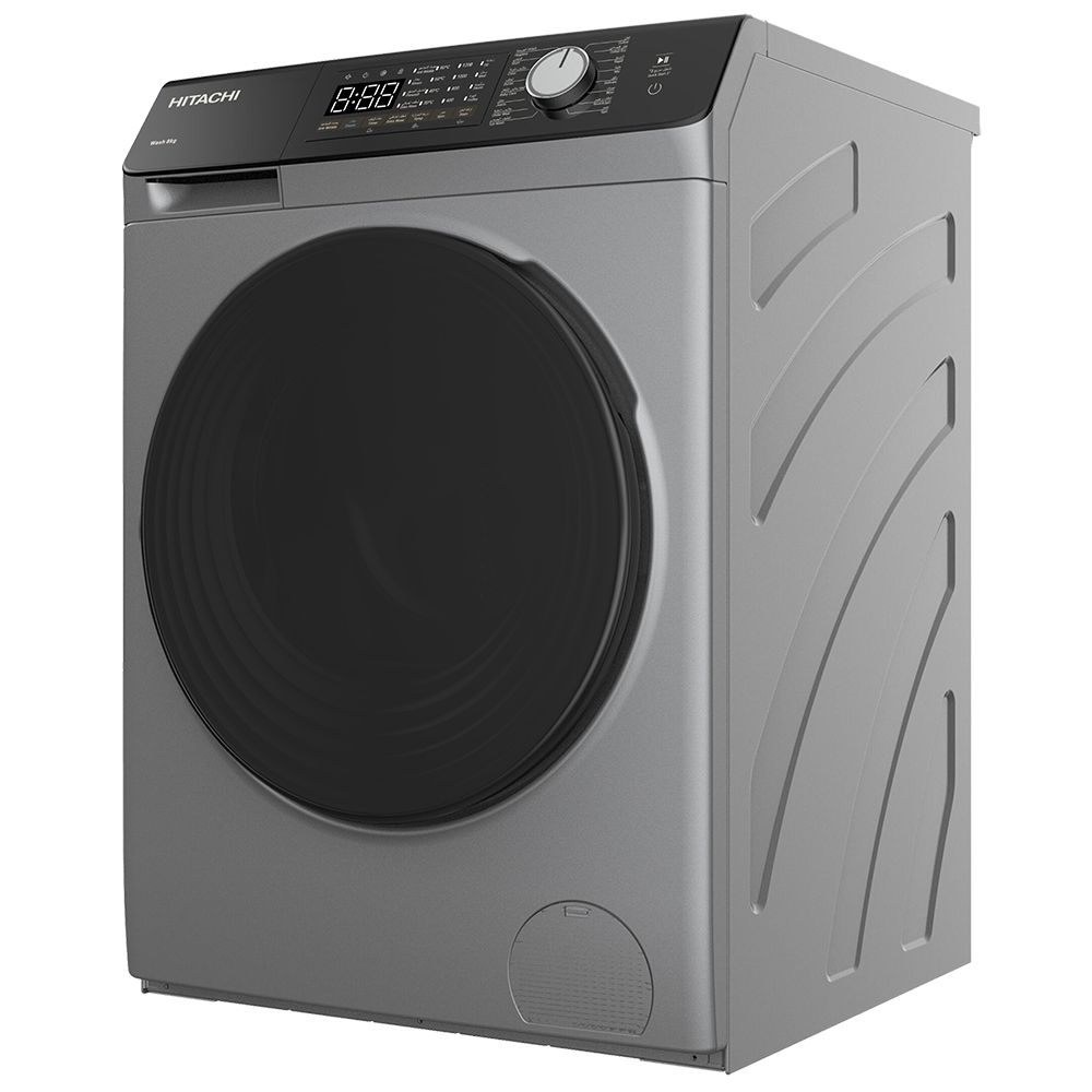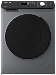Пральна машина Hitachi фронтальна, 8кг, 1400, A+++, 60см, дисплей, пара, інвертор, люк чорний, cріблястий