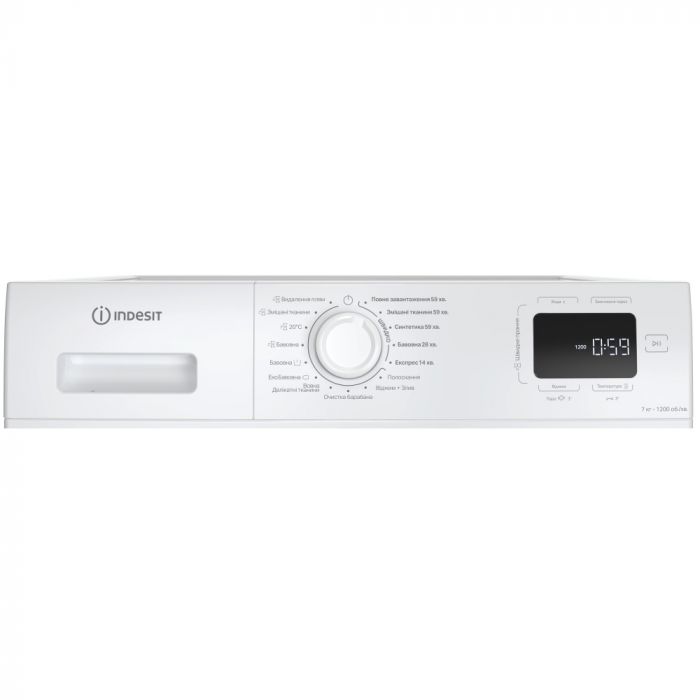 Пральна машина Indesit фронтальна, 7кг, 1200, A+++, 49.6см, дисплей, пара, інвертор, люк чорний, білий