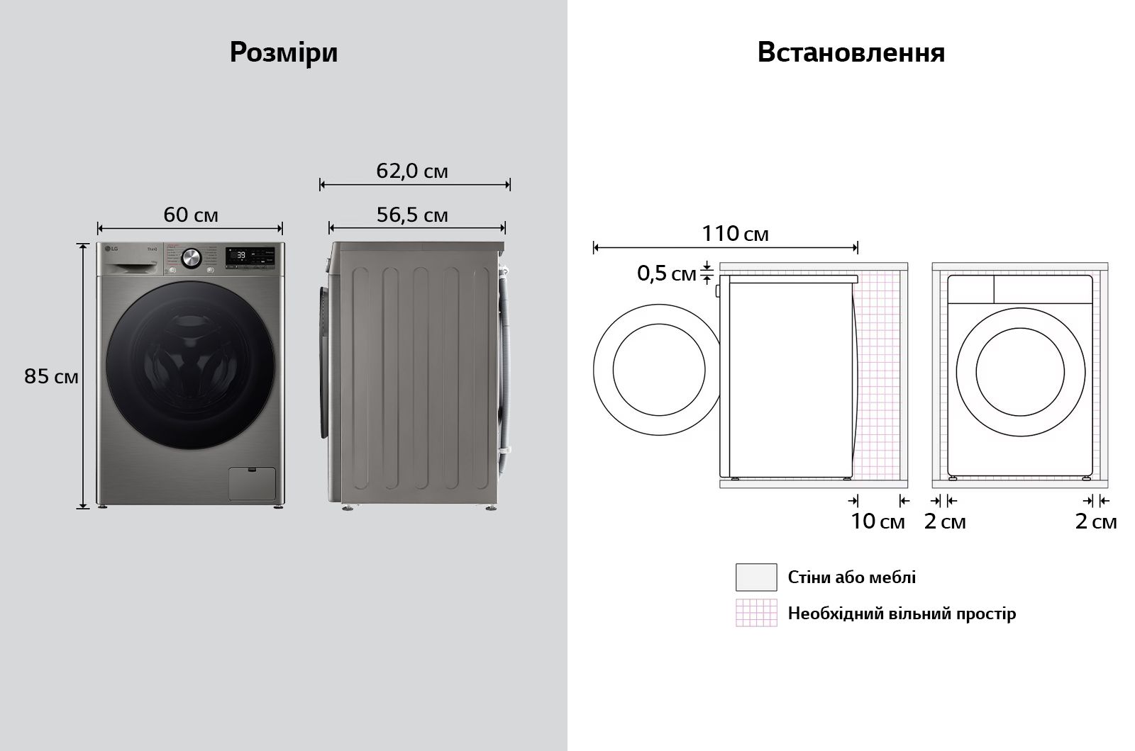 Особливості:індикатор залишкового часу, Функція ''Додати речі'', індикатор етапу циклу прання, індикація незачинених дверцят, індикація помилок у роботі, затримка завершення циклу прання (3-19 годин), автоматичний перезапуск зі збереженням попередніх налаштувань, блокування панелі керування від дітей, удосконалена система зменшення рівня вібрації, Функція обробки парою Steam, Збільшений розмір перемикача програм, індикація режиму "Відкласти завершення", індикація режиму "Блокування від дітей", індикація режму "Віддалений старт", Відкриття дверей: праворуч, індикація обраних параметрів програми, загартоване скло дверцят, Можливість завантажити додаткові програми прання, що завантажуються через додаток LG ThinQ