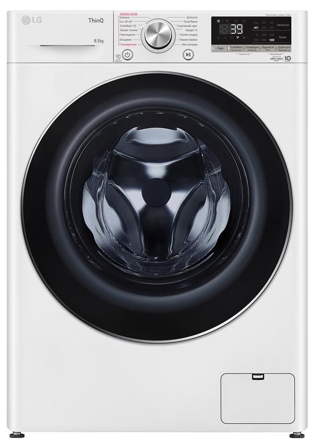 Пральна машина LG фронтальна, 8,5кг, 1200, A+++, 48см, дисплей, пара, інвертор, білий