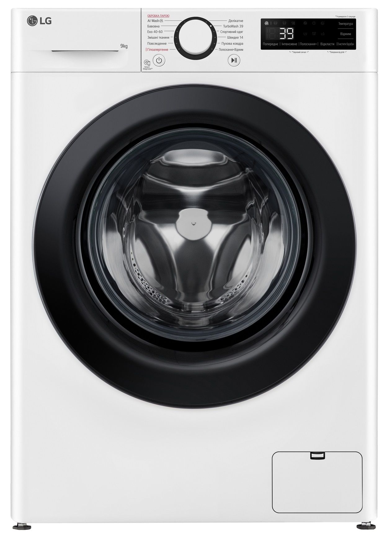 Програми:Бавовна, Спортивний одяг, Делікатна, Полоскання + Віджим, TurboWash 39, Еко 40-60, Змішані тканини, Делікатне прання, пухова ковдра, Гіпоалергенне прання, Повсякденне прання, Прання з ШІ (AI Wash), Швидке 14