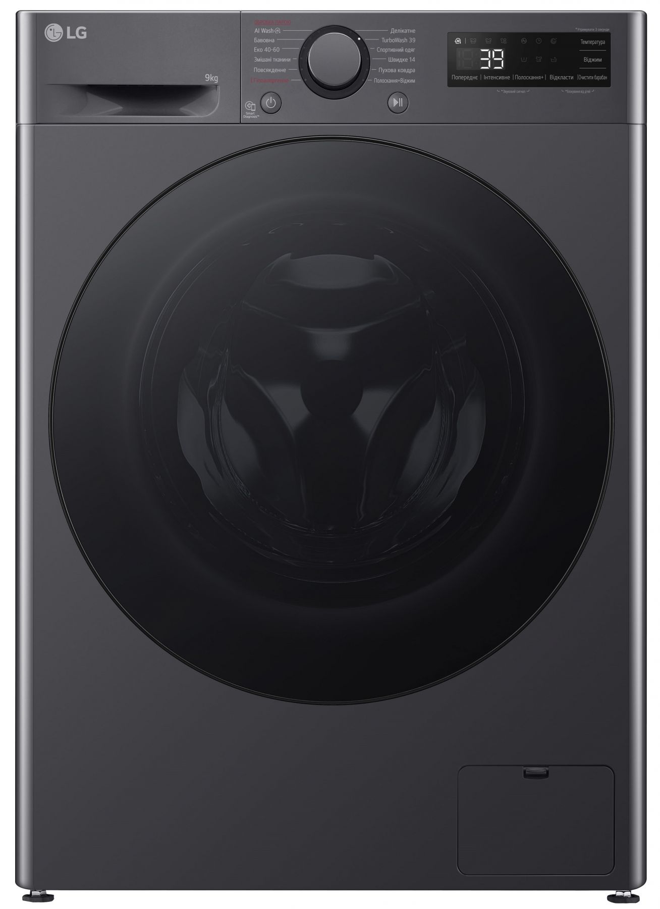 Пральна машина LG фронтальна, 9кг, 1200, A, 48см, дисплей, пара, інвертор, чорний