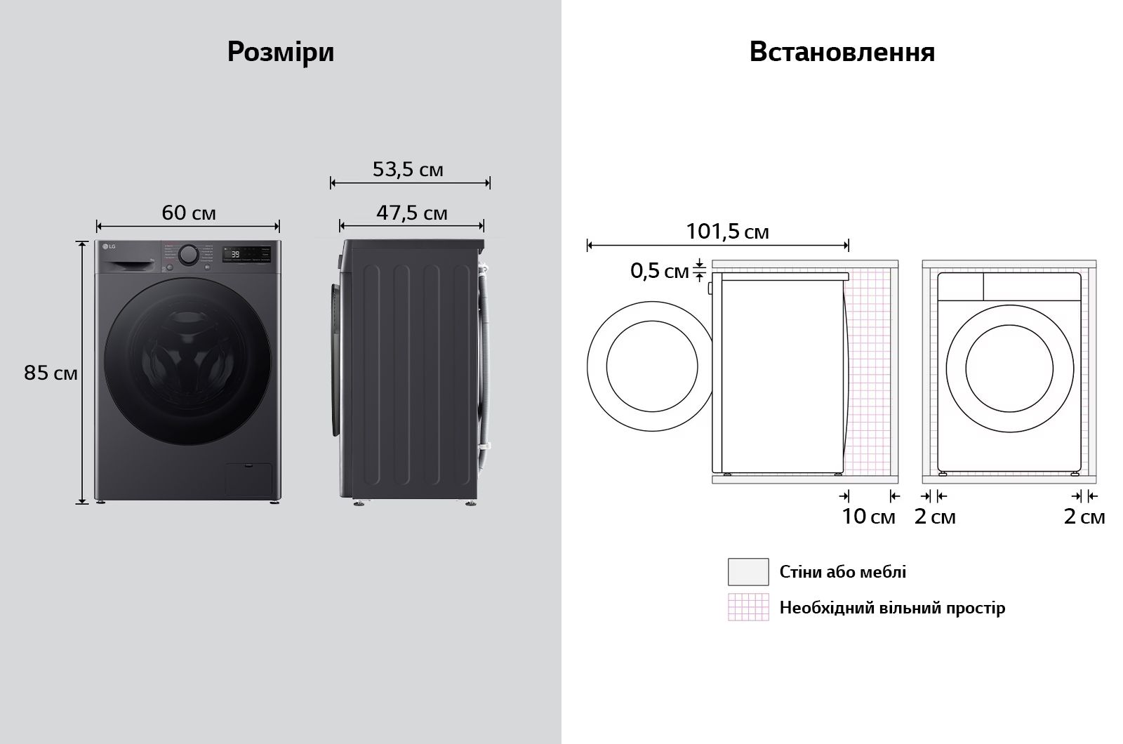 Особливості:Smart Diagnosis, Автоматичний перезапуск, Блокування від дітей, Система прямого приводу Inverter Direct Drive, Технологія ''6 рухів турботи'' 6 Motion, Індикація залишкового часу програми, Технологія контролю напруги (174-400 В), індикація обраних параметрів програми прання, індикація незачинених дверцят, індикація помилок у роботі, затримка завершення циклу прання (3-19 годин), блокування панелі керування від дітей, Функція обробки парою Steam, 'Система зменшення рівня вібрації, Індикація завершення роботи, Відкриття дверей: праворуч