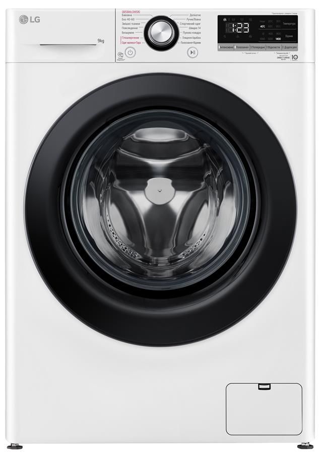 Пральна машина LG фронтальна, 9кг, 1400, A+++, 57см, дисплей, пара, інвертор, білий
