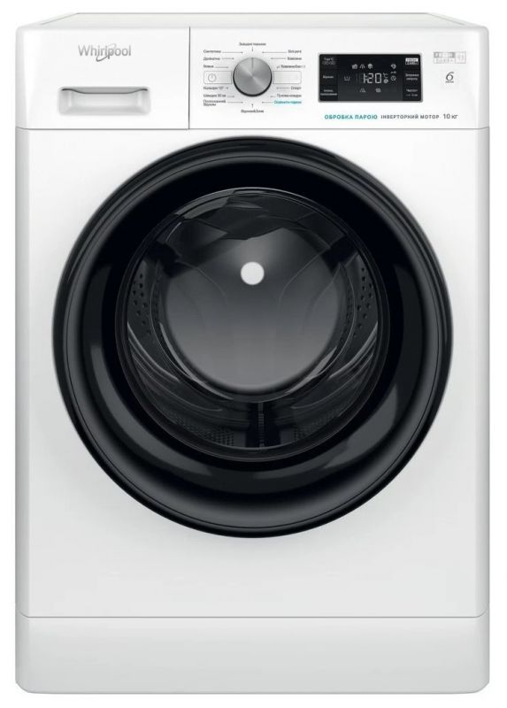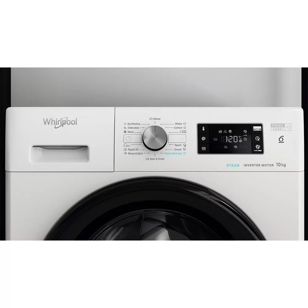 Пральна машина Whirlpool фронтальна, 10кг, 1400, A+++, 60см, дисплей, пара, інвертор, люк чорний, білий